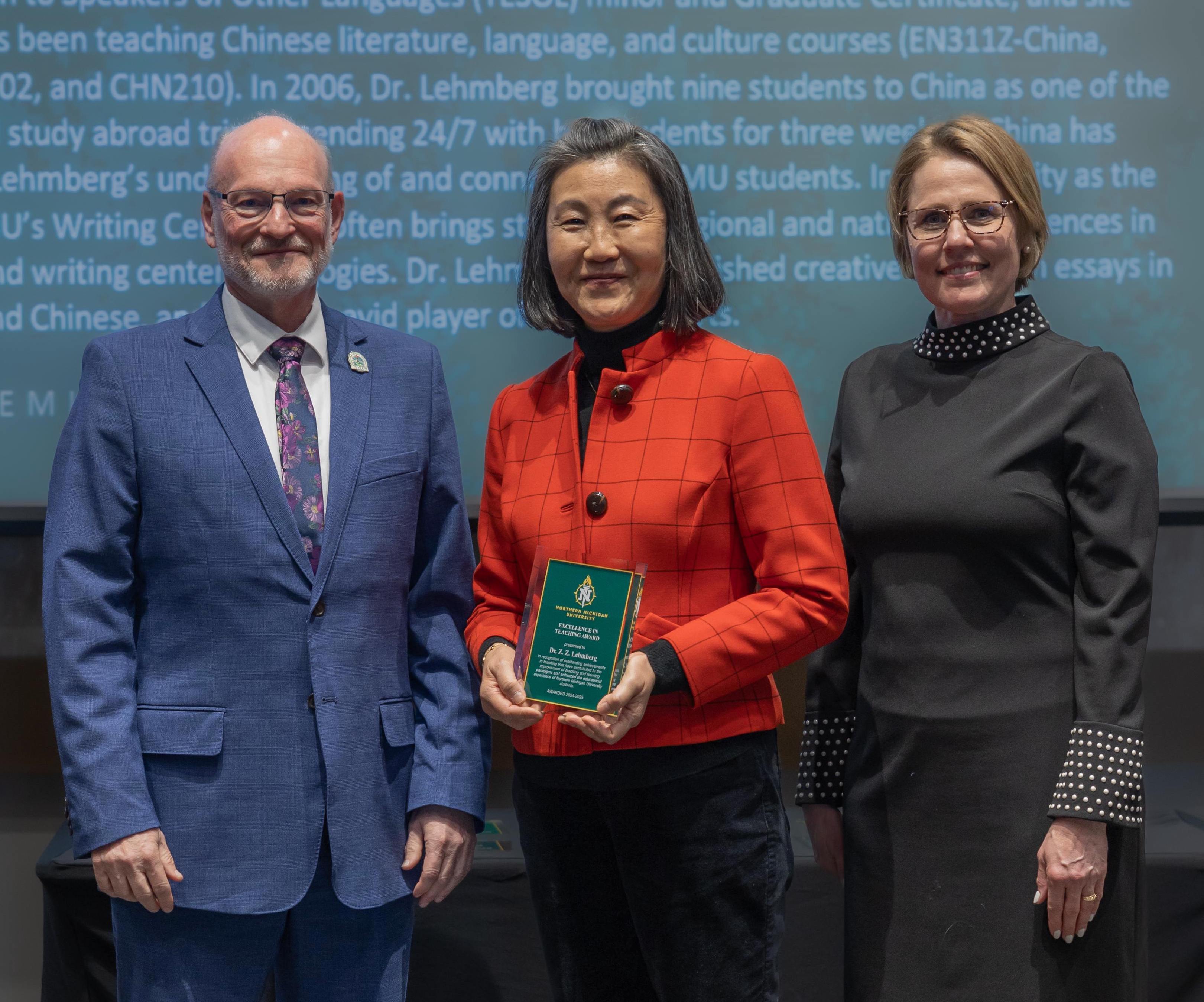 English Professor Zhuang-Zhong “Z.Z.” Lehmberg was born and raised in Guangzhou, China, but says she “grew up” in the United States. She came to this country as a transfer student when she was 20 years old. Lehmberg received a B.A. in business and an M.A. in English from NMU before completing her graduate studies at Wayne State University, where she received her Ph.D. in English. She then returned to Marquette to teach at NMU and to raise a family with her husband, Paul.