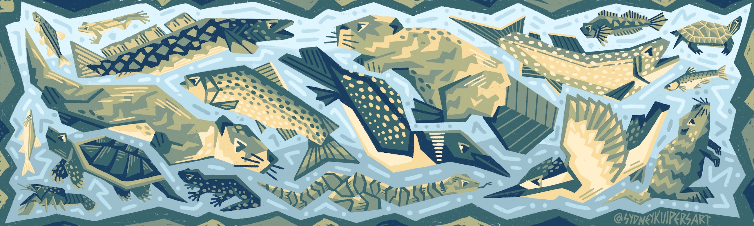 “I was super-inspired by the aquatic and semi-aquatic animals that live in the U.P.,” Kuipers explained. “I talked to a couple of my friends who work in the fish labs and a couple of my professors about specific species of fish I should use, as well as the other animals.”