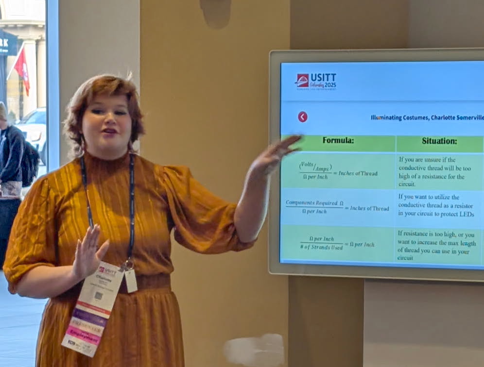 “It essentially went over the results from my research that allows conductive thread to be a viable alternative to wire when integrating lights into costumes or significantly reducing the number of wires necessary,” she explained. “The conference was super beneficial to me in starting my career network. I got to talk with various graduate schools and employers looking for costume work over the summer, which will give me practical work experience outside of NMU. I also connected with industry professionals and started building relationships that will help me progress in the field.”